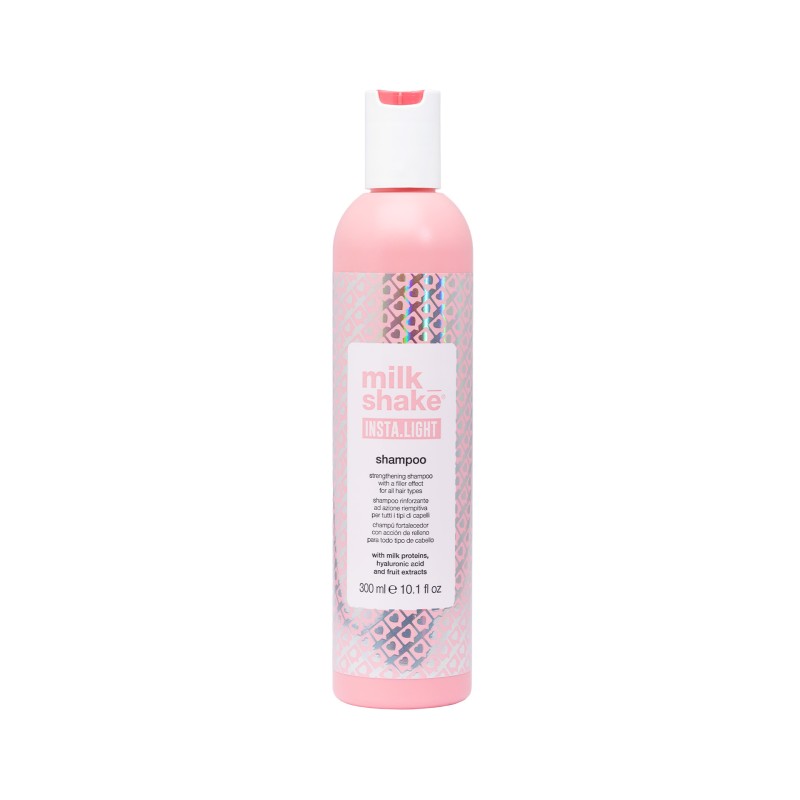 Das milk_shake Insta.Light Shampoo wurde speziell entwickelt, um allen Haartypen eine sanfte, aber effektive Reinigung zu bieten. Die einzigartige Formel kombiniert Milchproteine, die das Haar stärken, mit Hyaluronsäure, die für optimale Feuchtigkeitsversorgung sorgt. Zitronen- und Heidelbeerextrakte verleihen dem Haar einen natürlichen Glanz und beleben es sofort. Dieses Shampoo macht das Haar leicht kämmbar, geschmeidig und verleiht ihm ein gesundes Aussehen.